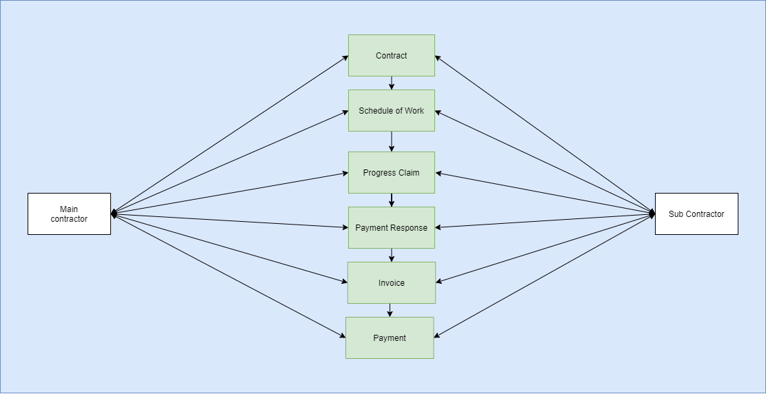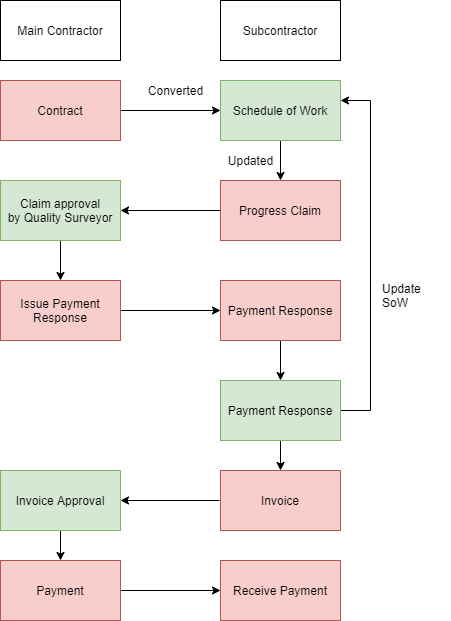 The subcontractor submits a claim in monthly intervals of the percentage work they have completed, the main contractor’s Quality Surveyor verifies an equal or lower percentage, and the main contractor will pay the subcontractor that verified percentage of the entire sum of the item via a Payment Response.