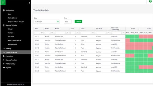 Administrators can access vehicle schedules or download reports of the database, while also attending to and resolving damage reports individually. Cleaning schedules can also be automatically assigned to specific or groups of vehicles.