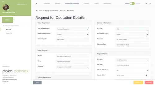 Purchasers can convert Purchase Requests into an RFQ, and send it out to multiple vendors. Compare and shortlist quotes in a single screen. Vendors can key in their quotes directly in the same system as you — it works even if the vendor has no account.